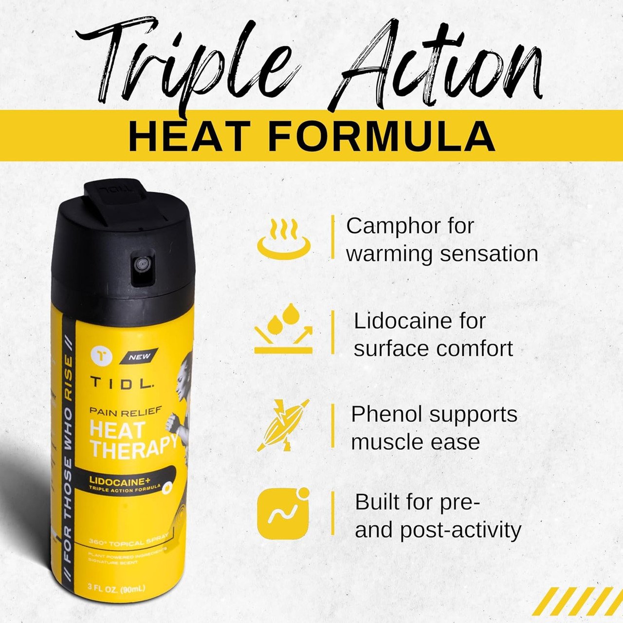 Meet TIDL Heat Therapy Spray – the advanced warming solution engineered for athletes who demand peak performance and rapid recovery. Our maximum strength formula with Lidocaine delivers targeted heat therapy that prepares muscles for action and soothes post-training soreness. The plant-based formula provides deep, penetrating warmth without harsh chemicals, making it your ideal partner for every workout.